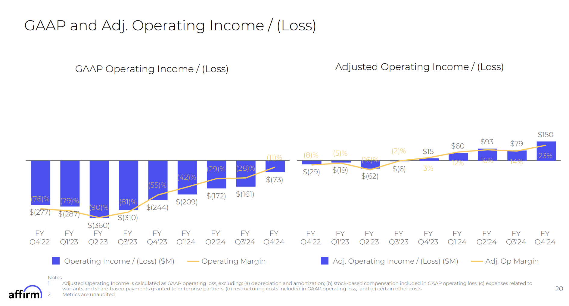 - Affirm reported impressive 48% revenue growth in FQ4 and recorded adjusted operating income of $150 million.