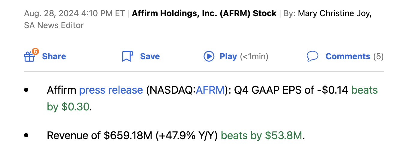 Affirm has really turned the business around with the fintech reporting a strong FQ4 as follows: