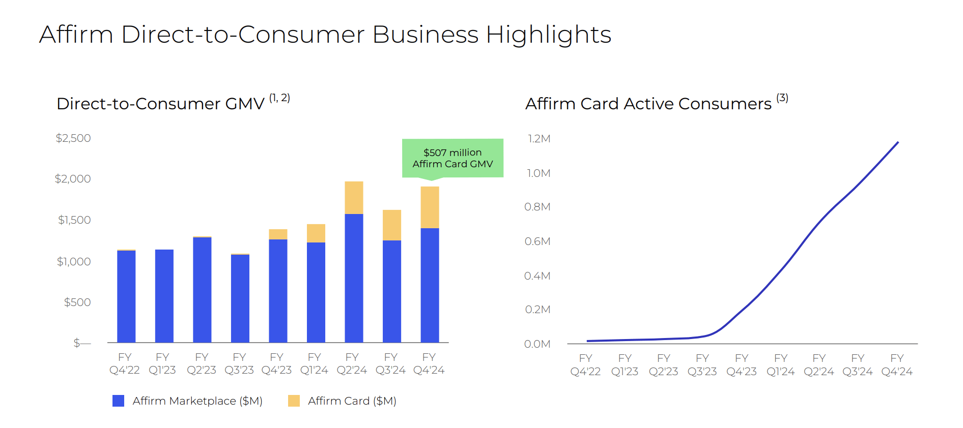 - The company has substantial catalysts in FY25 with digital wallets like Apple Pay and the expansion of use of the Affirm Card.