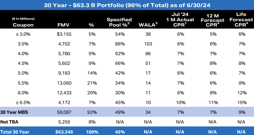 As you probably know, the yield curve has been inverted, meaning that short-term interest rates have been higher than long-term interest rates. AGNC has been rotating into MBS with coupons of 5%+, which makes up approximately 60% of its portfolio now. Source