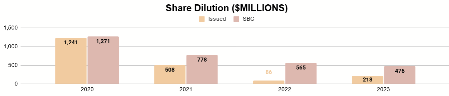 • Share dilution is also occurring, which will reduce long-term returns.