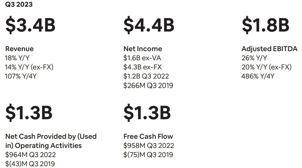 Since Airbnb depends on active listings and new supply, it was particularly important to see it report a 19% YoY growth in active listings. This means Airbnb added almost 1 million new listings this year.