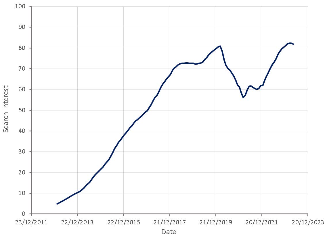 Figure 6: “Airbnb” Search Interest (Source: Created by author using data from Google Trends)