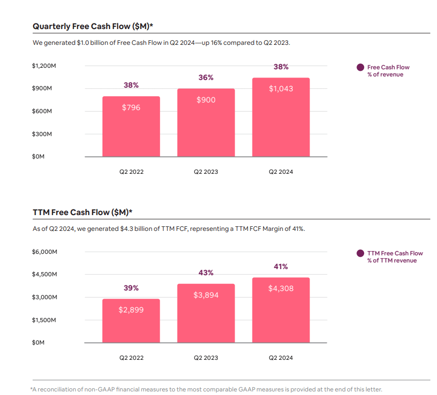 From a cash flow perspective, Airbnb generated $1 billion in free cash flow for the quarter and the company’s total trailing 12-month free cash was at over $4.3 billion which is a record for the company. These are impressive metrics as the company is a cash cow and these amounts have continued to grow as shown in the graphics below:
