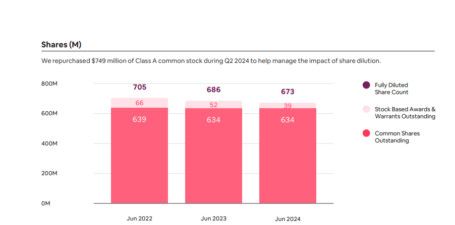 One positive for investors is that the company did repurchase roughly $750 million of Class A during the quarter which is helping to offset stock-based compensation as you can see from the below graphic from the company’s Q2 shareholder letter: