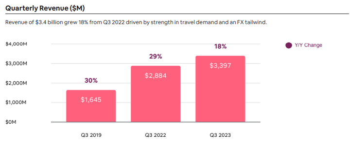 • Airbnb reported strong Q3 financial results, driven by robust demand and international expansion, but expects moderate growth in the coming quarters mainly due to geopolitical tensions in the Middle East.