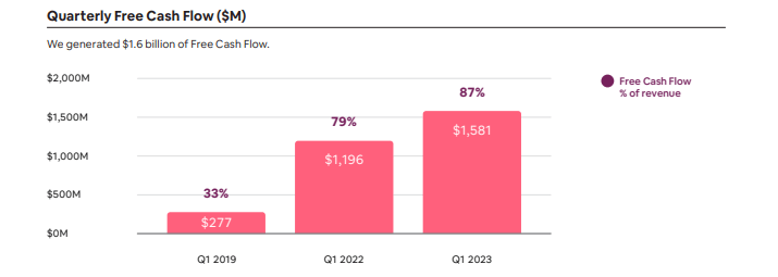 That is a solid achievement – for reference, lodging peer Expedia (EXPE) has not generated positive GAAP net income in its first quarter of the year since 2015, and that quarter benefited from non-cash line items. Given the seasonality, it is not that surprising that ABNB generated $1.6 billion in free cash flow, making up 87% of revenue.