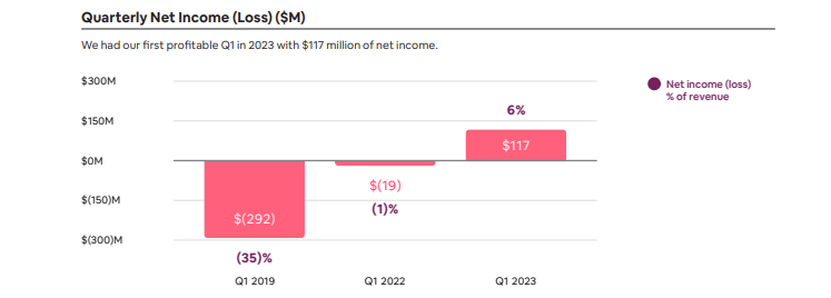 ABNB was able to deliver its first GAAP profitable first quarter with a 6% net margin.