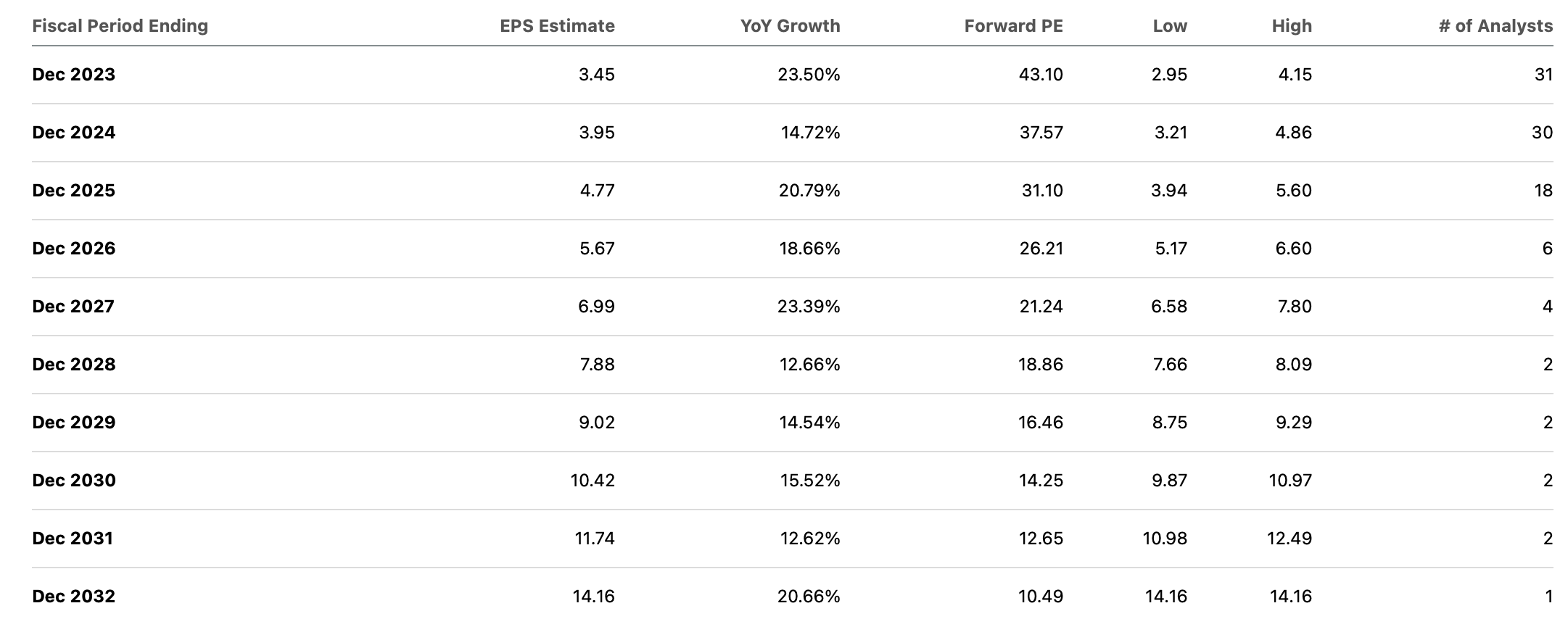 ABNB’s earnings multiple also represents a steep premium to the 12x multiple seen at EXPE. In fact, ABNB is not expected to trade at that multiple until the year 2031.