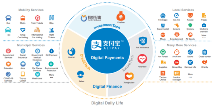 To understand how Ant Group was progressing since its halt of the IPO in 2020, we need to first understand how the company operated before that event. Ant built an ecosystem around its platform, offering different applications developed under a digital infrastructure for e-commerce and other services.