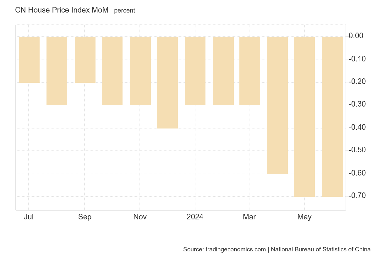 For example, the China House Price MoM is an index that measures the monthly difference of newly built residential apartments in 70 medium and large cities in China. As you can see, the situation is getting worse and worse and there are no glimmers of recovery.