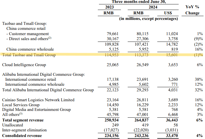 Alibaba Group June Quarter 2024 Results