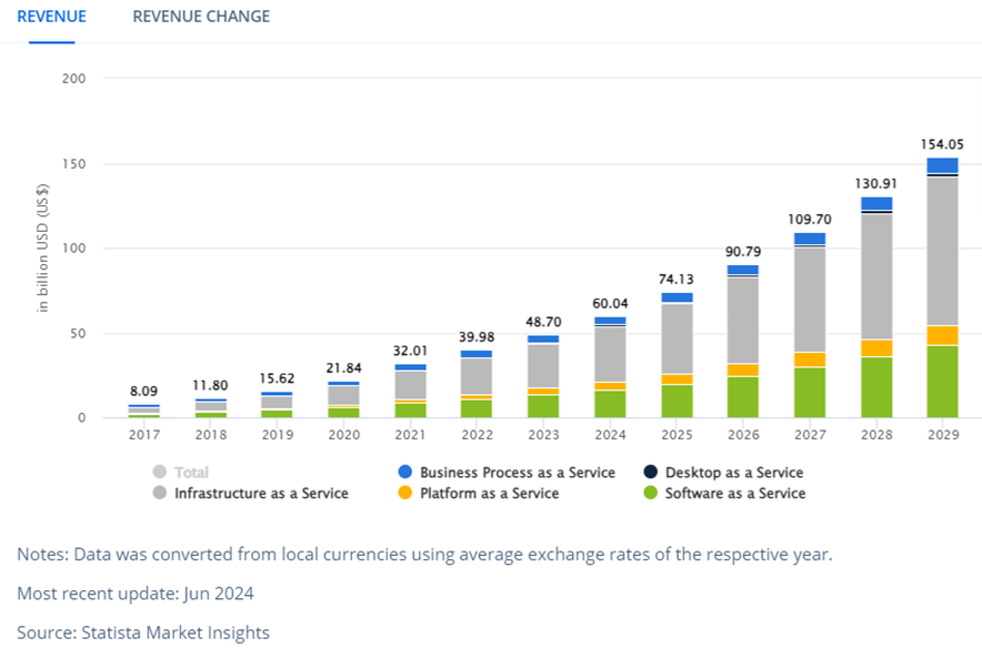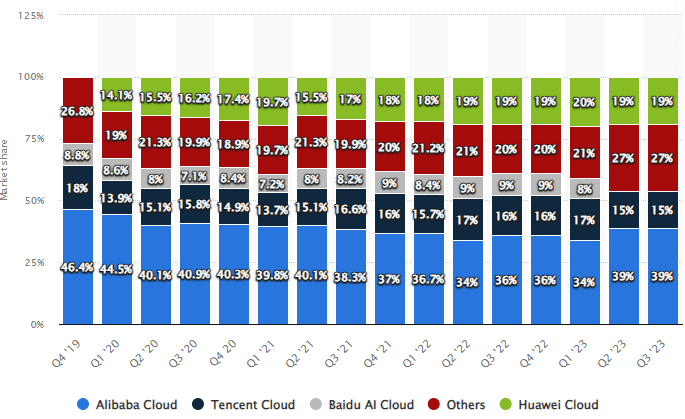 According to Statista estimates, by 2029 the Cloud market may be worth $154.05 billion in China, registering a 2024-2029 CAGR of 20.75%. Since Alibaba is the cloud leader in China, it is highly probable that it can benefit from this trend.