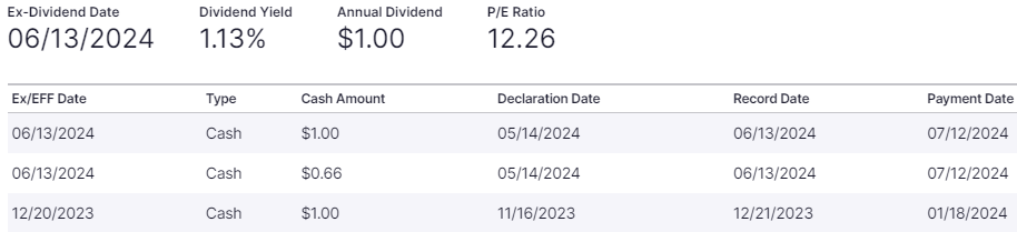 At the end of 2023 one of the major changes for Alibaba was the decision to issue a dividend, the first of a long series probably. This dividend is issued on an annual basis and often goes by the wayside given its low yield: 1.13%.