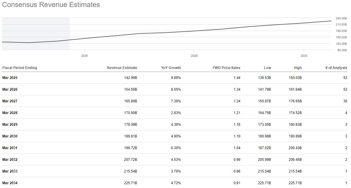 Obviously there is nothing certain in these assumptions, but objectively it is really complicated to make Alibaba look overvalued. The amount of cash flows is outsized relative to the current market capitalization, which is why this company remains one of the best strong buys at the moment in my opinion. By the way, I would like to point out that the Street Estimates considered are quite conservative, in fact in no year the revenue growth rate is in double digits.