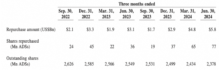 The repurchase amount is increasing more and more and has reached $5.80 billion in the last quarter; before long we will also know how many shares it bought from June to September. For those who want to get more info regarding Alibaba’s buyback, I wrote a dedicated article.