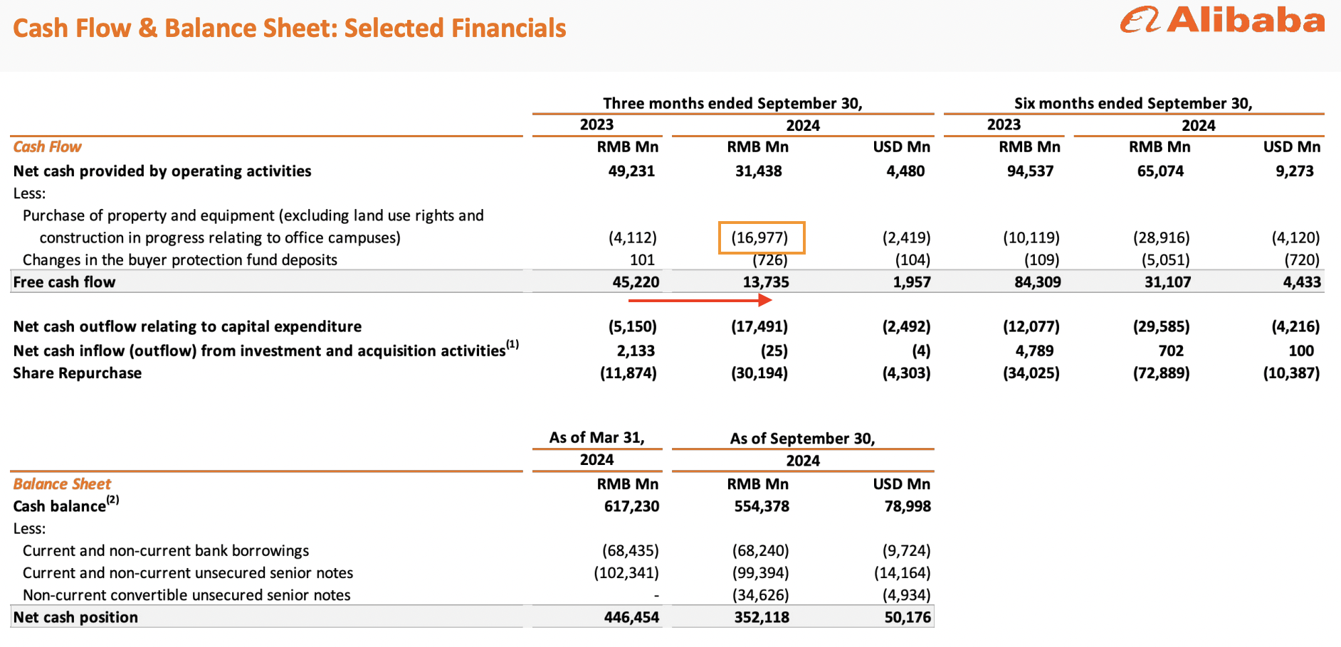 In addition, there is a refund to Tmall merchants after we cancelled the annual service fee and some other working capital changes related to factors, including the scale-down of certain direct sales businesses. Given the sustained and strong demand for AI, we will continue to invest in AI infrastructure as we anticipate future demand for AI-driven cloud services.