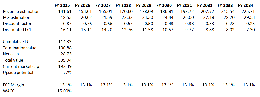- My DCF simulation, using an aggressive WACC and conservative revenue growth assumptions, underscores substantial undervaluation.
