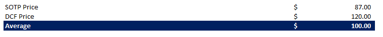 The price target is derived from the weighted average of outcomes under both the discounted cash flow (“DCF”) and sum-of-the-parts valuation approach.