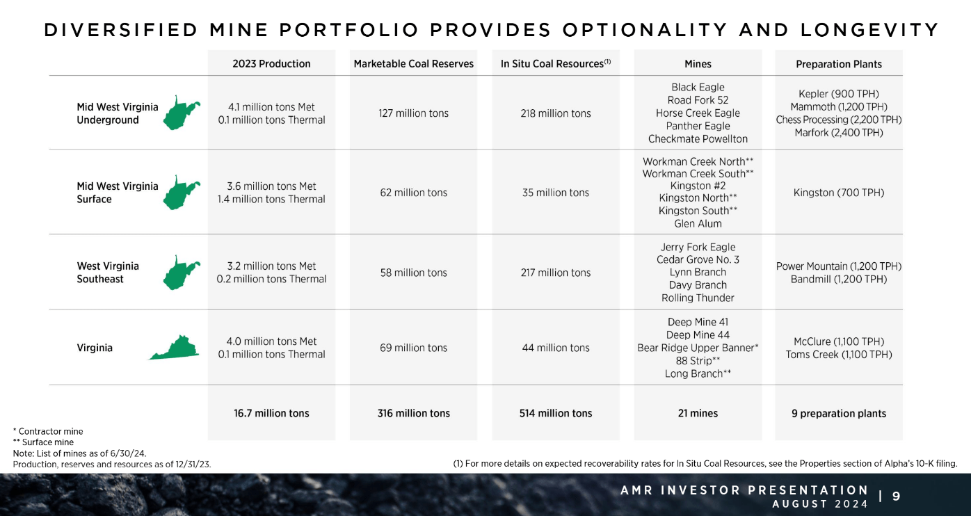 When the old Alpha went bankrupt, it split into 2 entities, Contura and Alpha Natural. The majority of the “good” met mines (and some thermal mines) were absorbed into Contura. Through a series of divestitures and mergers, Contura became the AMR we know today, officially rebranding to Alpha Metallurgical Resources on February 1, 2021. The new name was designed to pay tribute to their old roots while also aligning with their new pure play met focused business model they operate today.