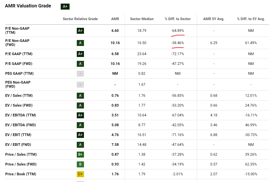 At a current price of $226.54, this represents a 53% upside to where the stock is trading at the time of this writing. This is the deep value proposition AMR presents to investors.