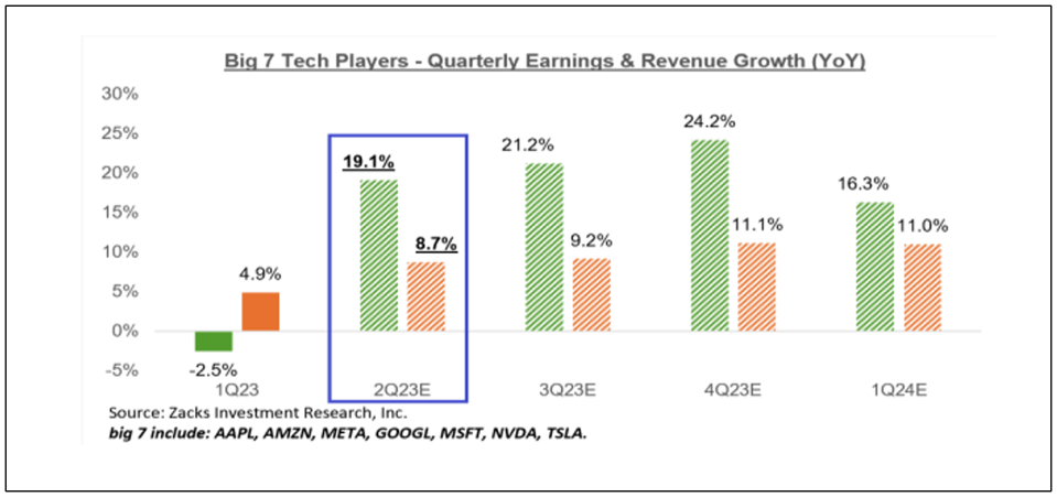 Meanwhile, Zack’s looked at the earnings picture for the “Big 7 Tech Players” – Microsoft, Alphabet, Meta, Nvidia, Apple, Tesla and Amazon. The earnings profile for the Big 7 is estimated to be more robust compared to the overall technology sector.