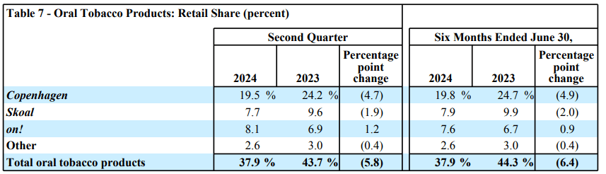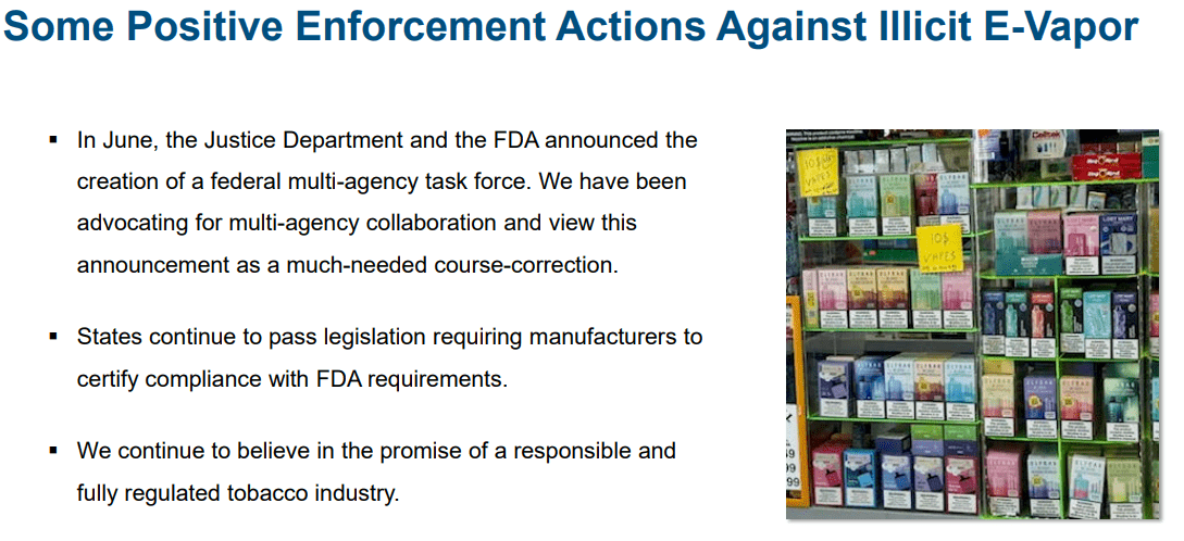 • The company is successfully transforming with innovative smoke-free products like on! nicotine pouches and NJOY e-vapors, capturing market share and driving growth.
