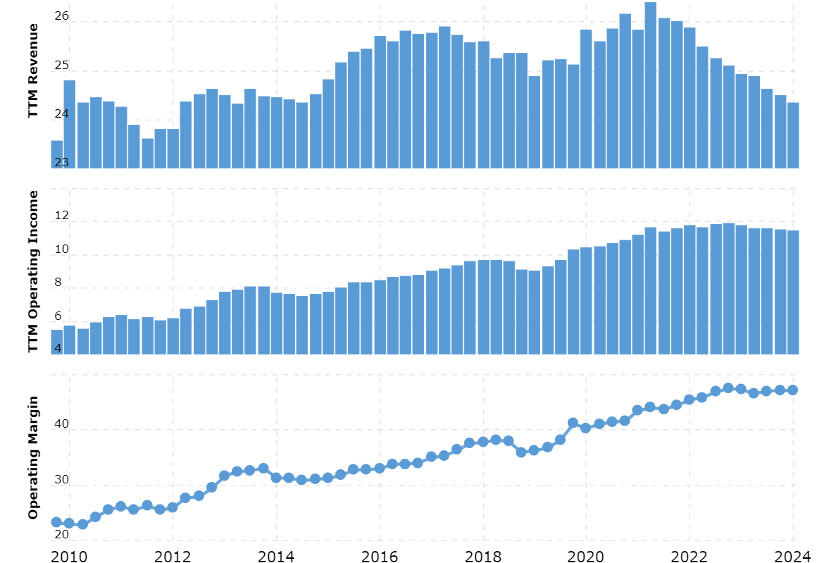 Altria Revenue, Operating Profit and Operating Profit Margins Overtime (Macrotrends)