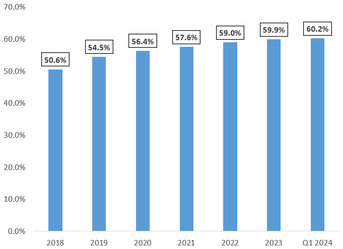However, there is a positive aspect to MO’s leading segment and pricing policy. The Company has managed to grow its adjusted operating companies income (OCI) margin consecutively during the 2019 – Q1 2024 period, starting from 50.6% adj. OCI margin in 2018 to 59.9% and 60.2% during 2023 and Q1 2024, respectively. This is the crucial factor allowing MO not only to uphold but also to further grow its dividends.