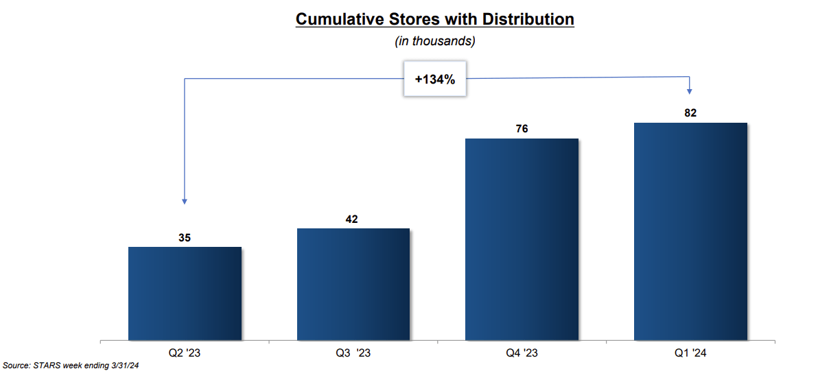 During Q4 2023, MO introduced the first retail trade program, which turned out to be successful as ~70% of stores have options that ensure a better positioning of NJOY, which should help its visibility and retail fixture space. Also, MO keeps on growing the distribution chain of NJOY – the Company has exceeded its target of 70 thousand stores at the end of 2023 and managed to grow the cumulative number of stores with distribution to ~82 thousand in Q1 2024. MO expects the store count to reach 100 thousand by the end of 2024. The Company also closed the inventory gaps in retail, which helped to establish NJOY for future growth and promotional activities.