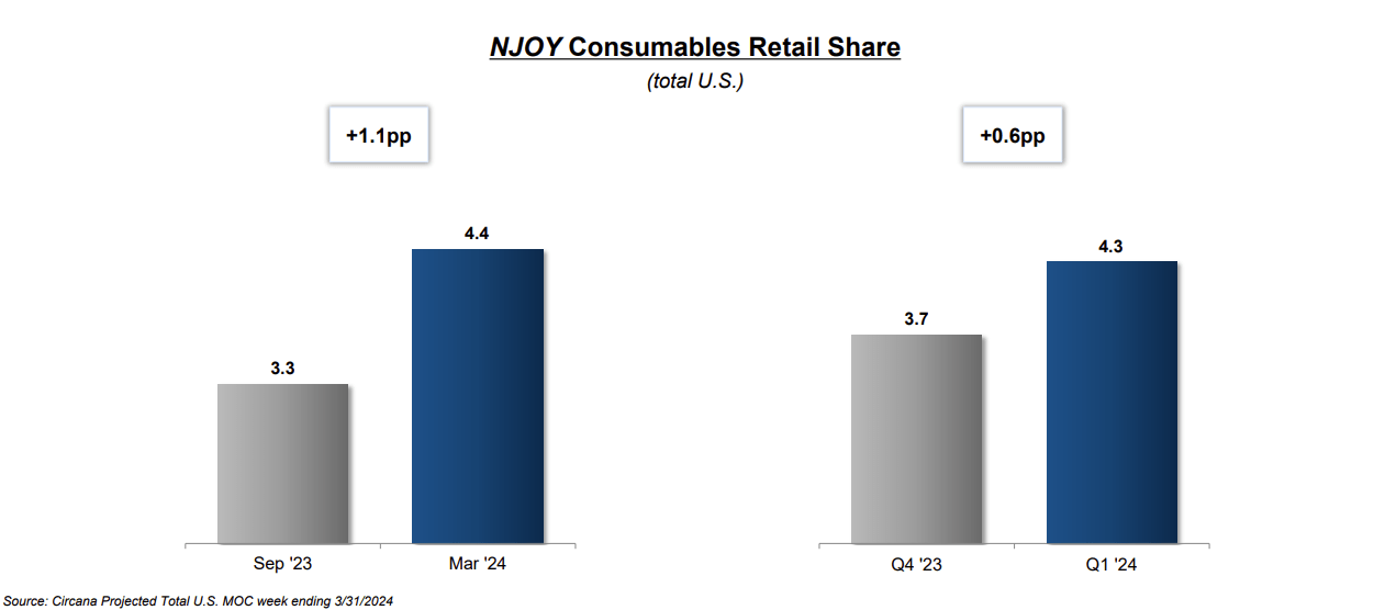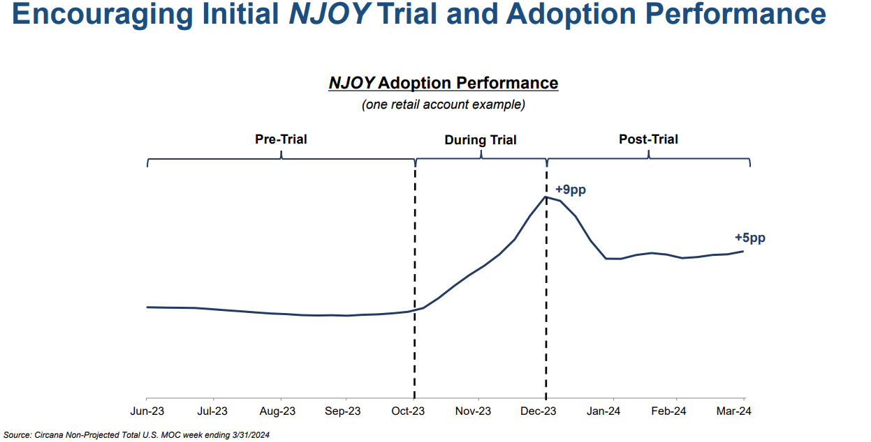 Regarding promotional activities, MO introduced expanded promotional offers in retail to attract consumers and generate the first trials of NJOY-branded products on a broader scale. The Company feels confident in NJOY’s quality and ability to grow into consumers’ awareness as MO saw early signs of such a phenomenon. As the Enterprise’s CEO, Billy Gifford explained with an example during the Q1 2024 Earnings Call: