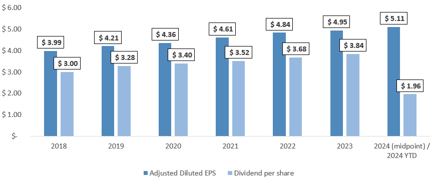 Chart 5: Adj. diluted EPS and DPS of MO