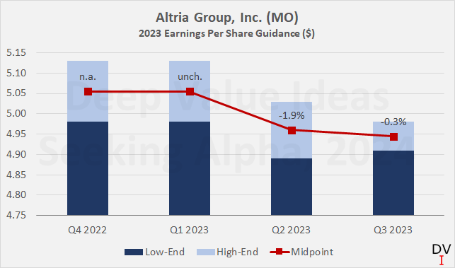 Figure 3: Altria Group, Inc. (MO): 2023 earnings per share guidance, as communicated in each quarterly press release (own work, based on company filings)