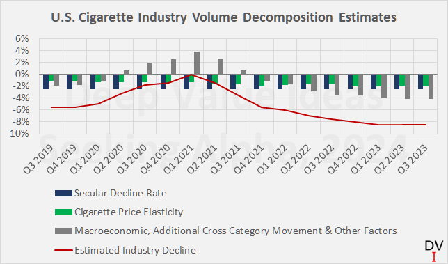 Figure 4: U.S. cigarette industry decline decomposition estimates according to Altria management (own work, based on company filings)