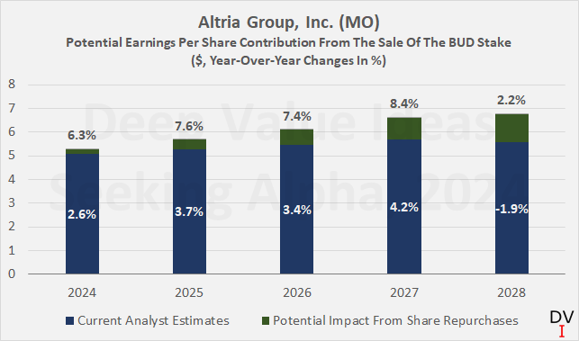 Figure 5: Altria Group, Inc. (MO): Potential impact of share repurchases funded by the proceeds from the sale of the BUD stake on earnings per share (own work, based on company filings)