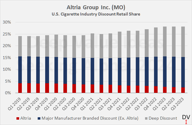 Figure 7: Altria Group, Inc. (MO): U.S. cigarette industry discount retail segment share (own work, based on company filings)