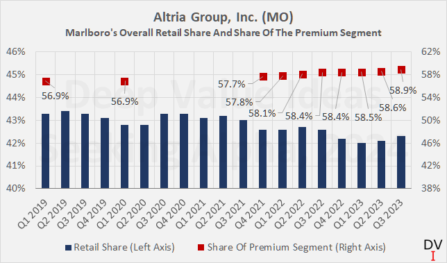 In my view, it is therefore crucial that Altria’s management executes where it matters most – its core brand Marlboro. After all, the premium brand accounted for 90% of Altria’s shipped cigarette volumes in the third quarter of 2023.