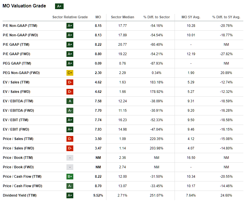 Table 1: Altria Group, Inc. (MO): Valuation metrics (Seeking Alpha)