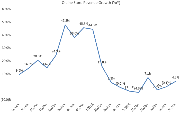 • Amazon’s 2Q FY2023 results show promising signs of growth rebound in its online stores segment, contributing to improved total revenue.