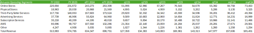 I believe AWS will realize continued growth acceleration for the duration of eFY24 and further acceleration in eFY25 as the firm scales out their CPU & GPU capacity. I’m expecting retail to grow at a slower pace as consumers remain cost-conscious.