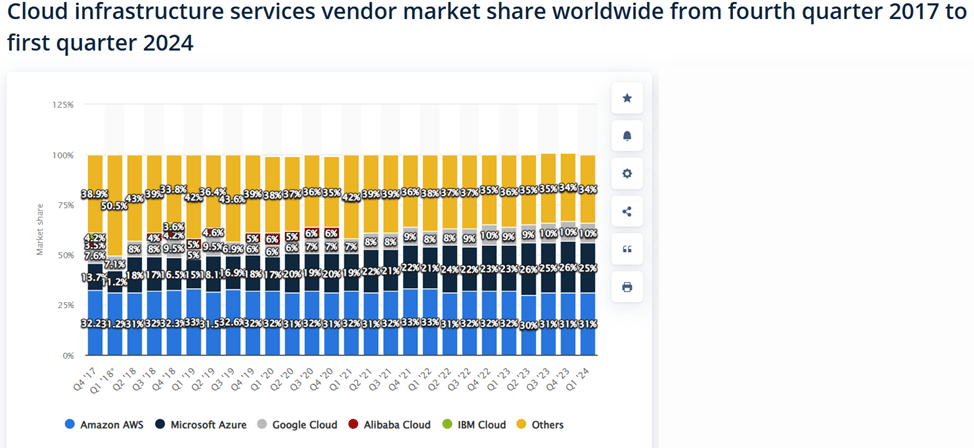 - Amazon.com, Inc.’s AWS continues to dominate cloud infrastructure, driven by enterprise migration to the cloud for cost and performance benefits, especially for AI applications.