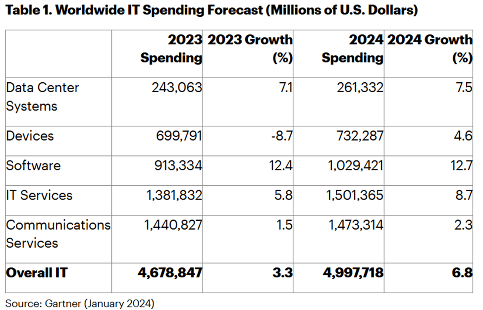 According to Gartner, global IT spend is expected to sum to $5T in 2024.