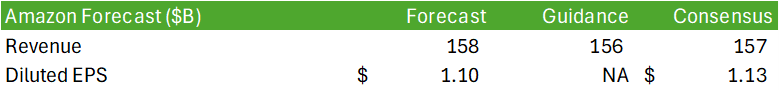 If the global economy were to continue to slow down, investments for GenAI may slow, resulting in Amazon being caught flatfooted with their large GPU & CPU expansions. Slower consumer demand may lead to lower unit volume sales across retail platforms and may trickle into fewer advertising dollars allocated to Amazon’s platforms.