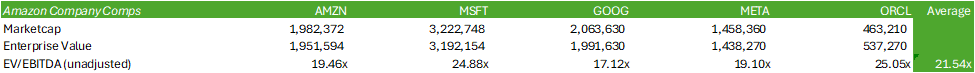 AMZN shares trade discounted to its peer average of 21.54x TTM EV/EBITDA, providing the shares room for mean reversion in terms of valuation.
