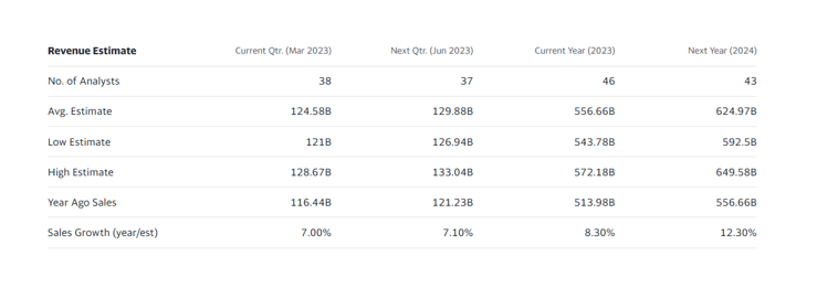 • Amazon could beat low earnings anchors next week when the company releases 1Q-23 earnings.