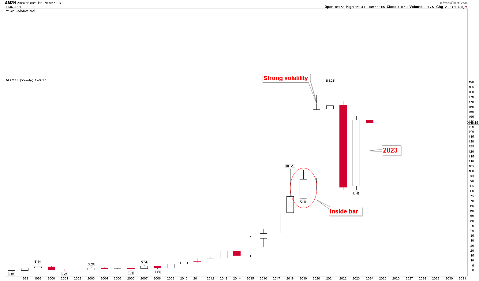 Amazon Yearly Chart (stockcharts.com)
