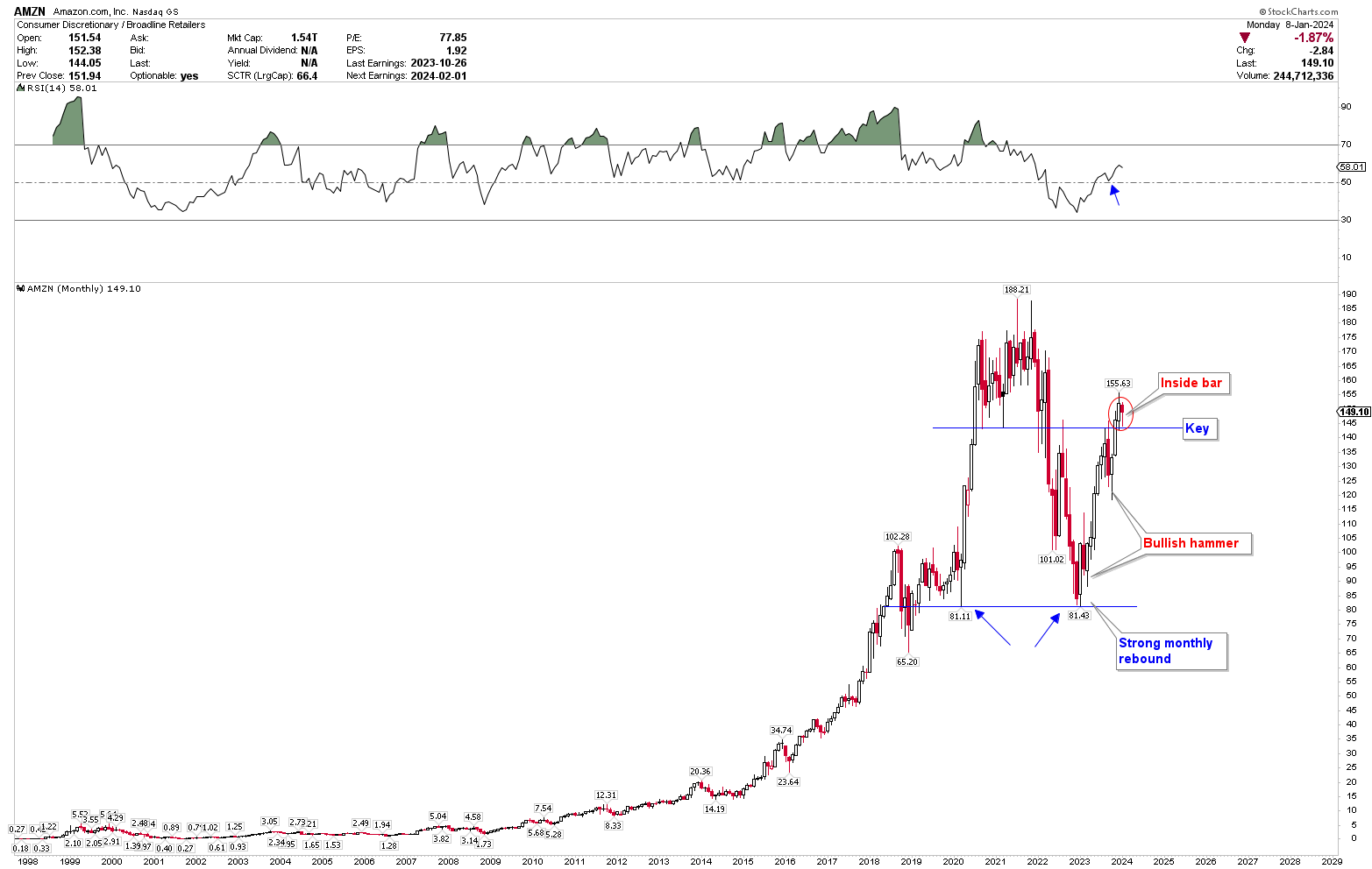 Amazon Monthly Chart (stockcharts.com)