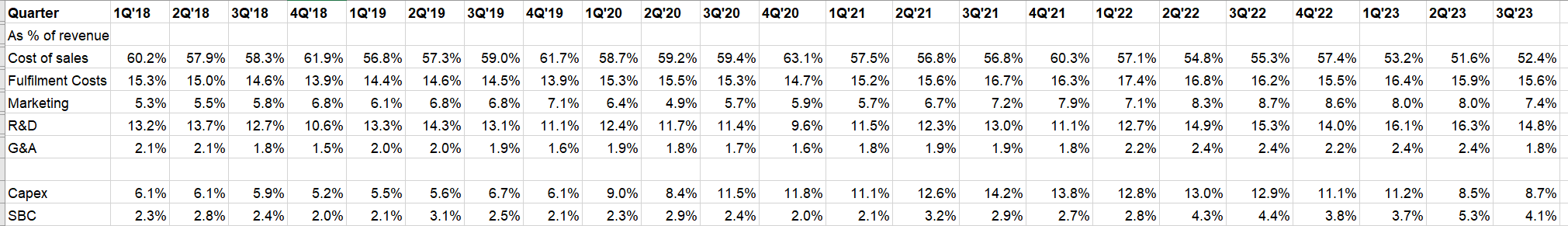 Why is this a much bigger deal? In 1Q’22, shipping+fulfillment costs as % of GMV peaked at 26.1%. Since then, this number has been coming down almost every quarter to reach 22.7% in 3Q’23.