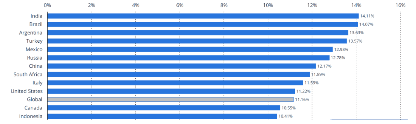 Amazon is a global e-commerce player and is attentive to markets with growth potential. It is noteworthy that the markets with the greatest growth potential are India, Brazil, and Argentina, as we can see below.
