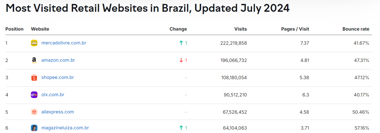 Most Visited Retail Websites in Brazil (Semrush)
